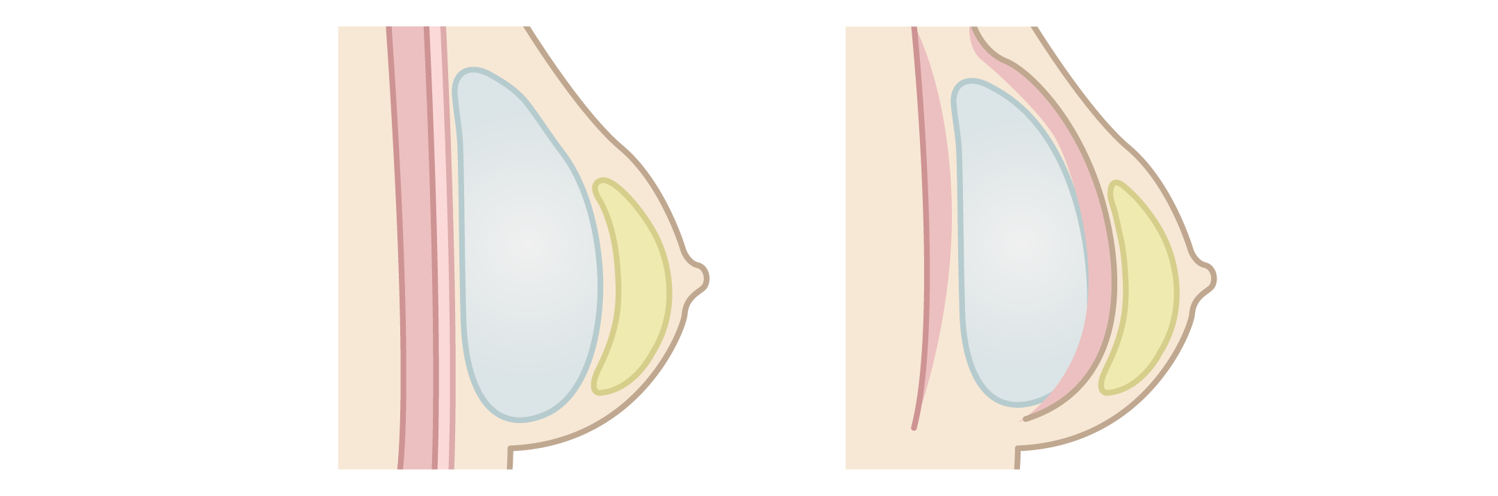 Subglandulär (unter der Brustdrüse): Schnellerer Heilungsverlauf, geringere Schmerzen. Geeignet bei ausreichend vorhandenem Brustgewebe.